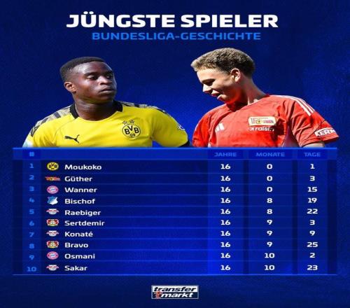 德甲历史最年轻出场球员前10: